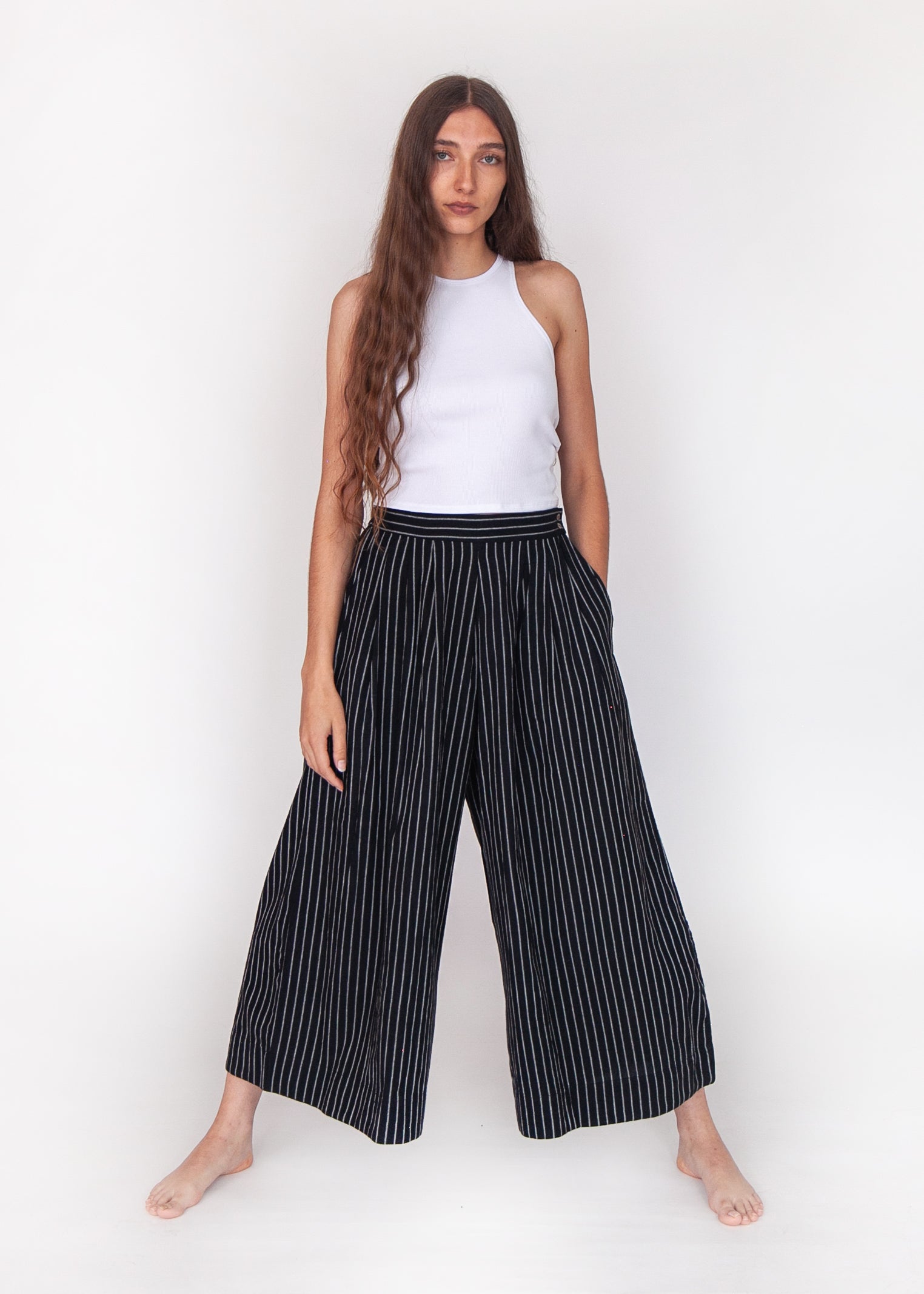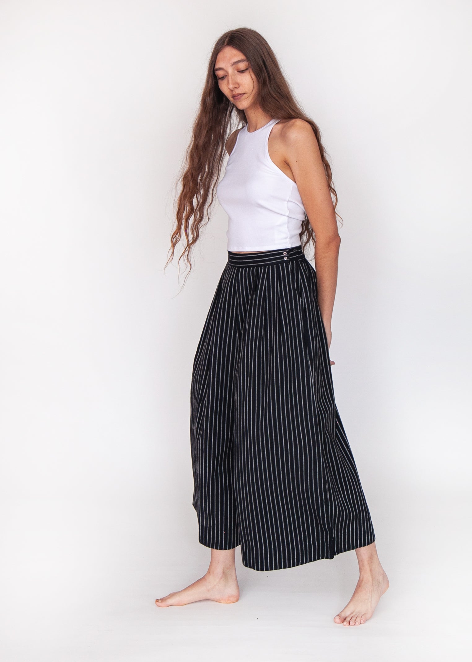 Danae Stripe Skirt Pant - Black